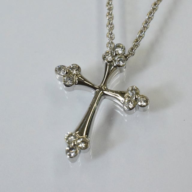 クロスの先にキラキラと輝く12粒のジルコニアが美しいシンプルで存在感のあるなプチペンダントです。